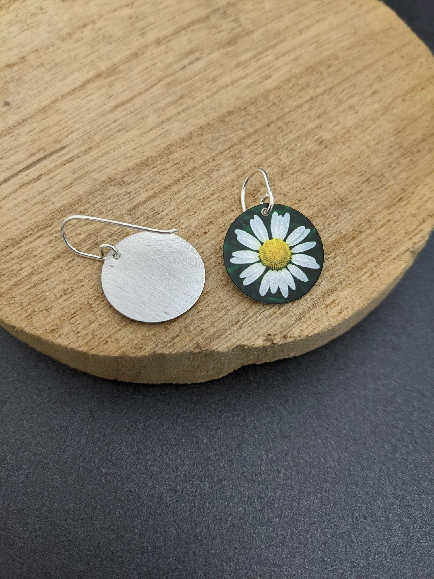 GARDEN BIRDS - Flower & Leaf 35mm disc earrings