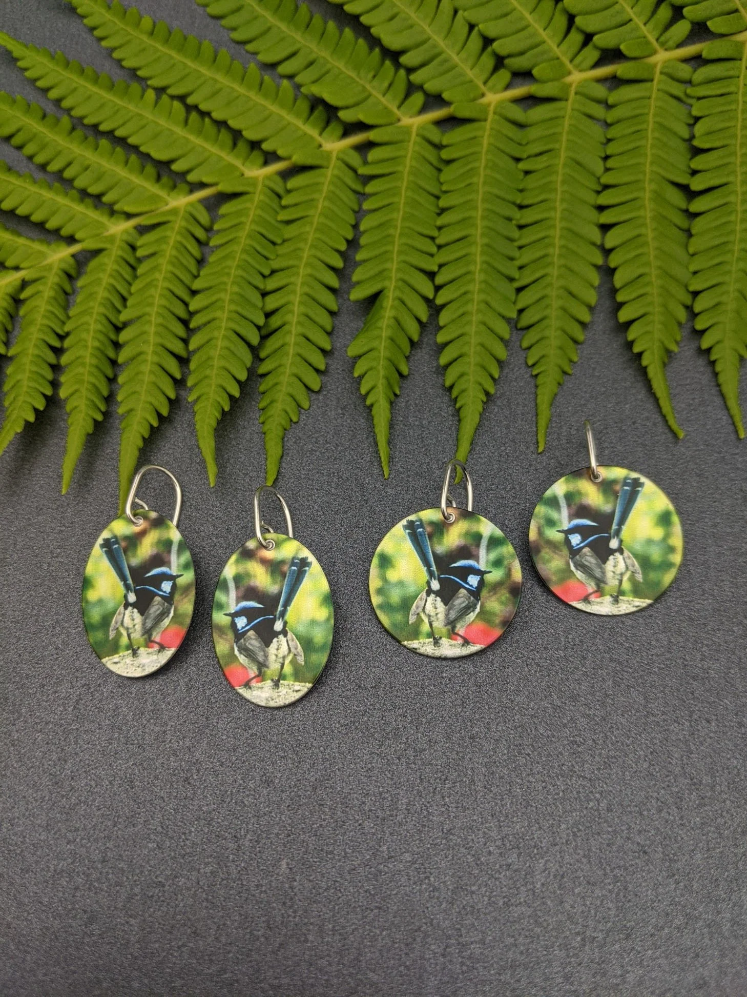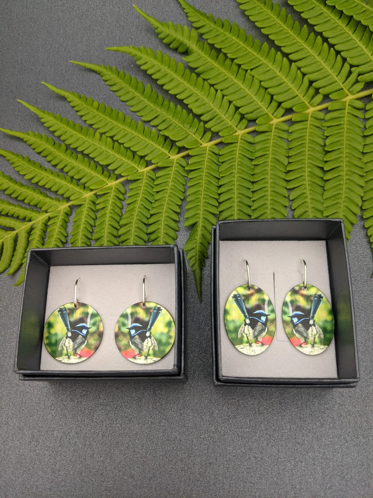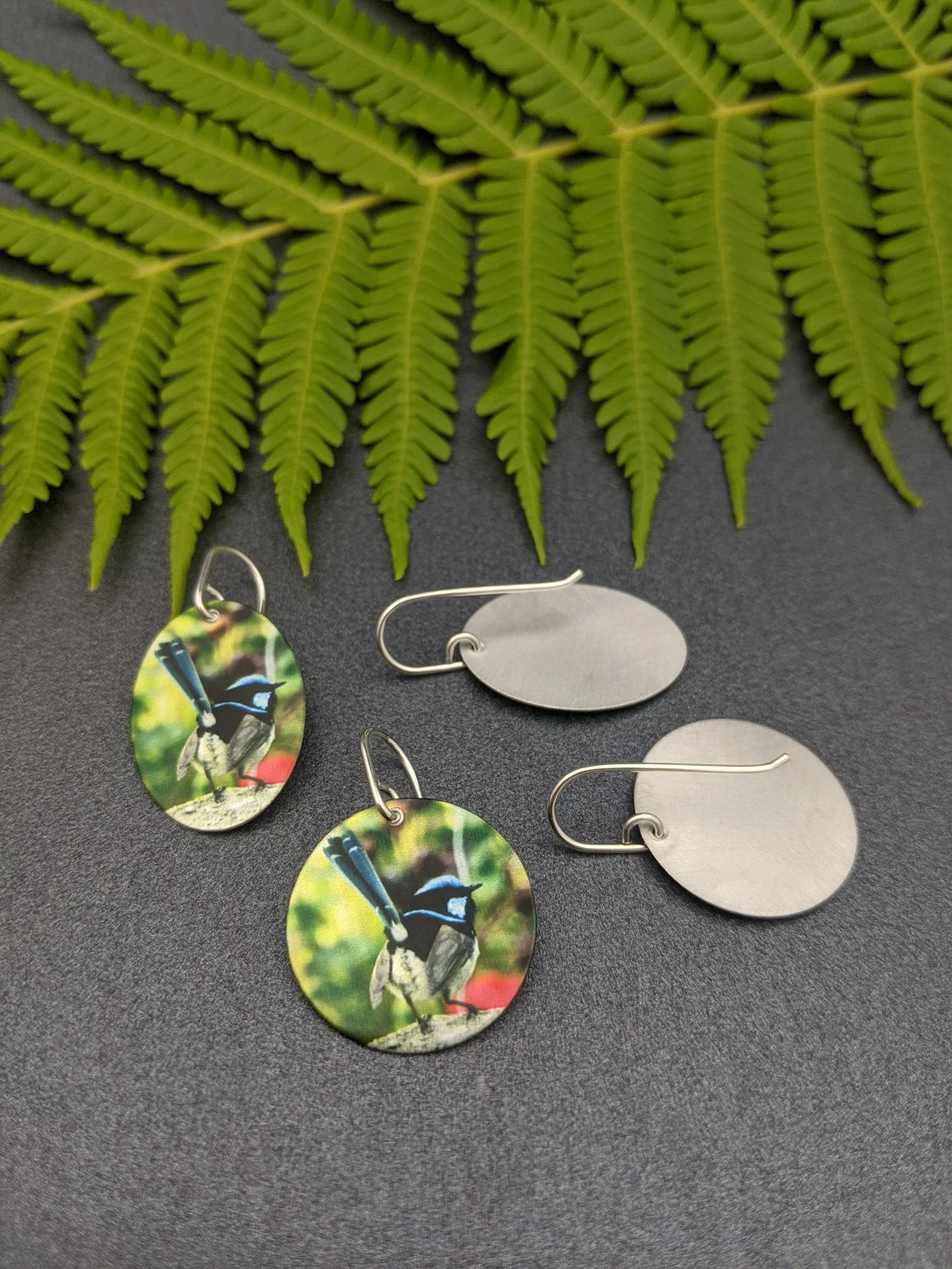 GARDEN BIRDS - Mismatched 25mm disc earrings
