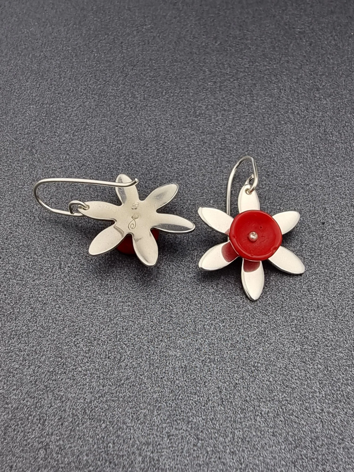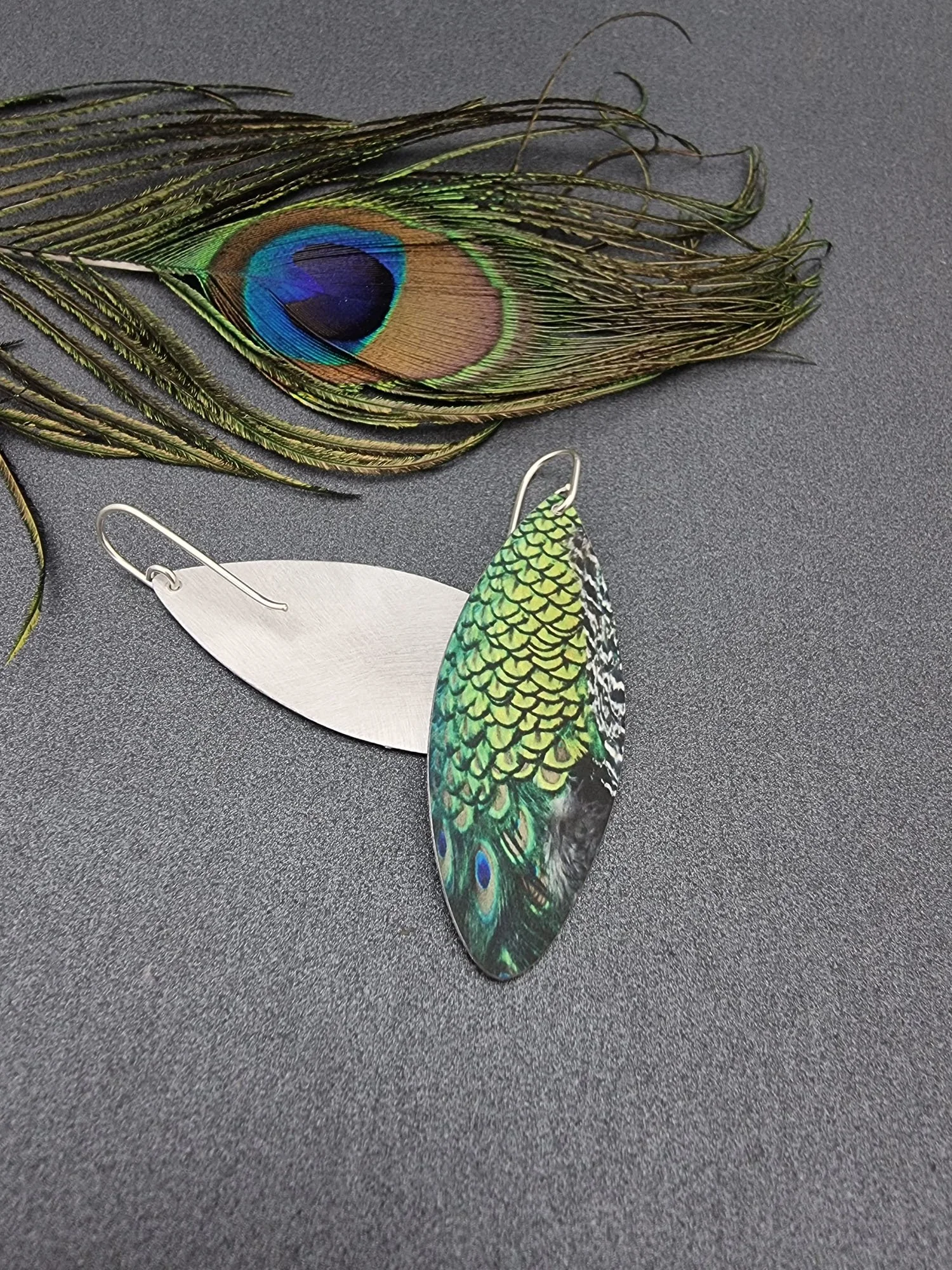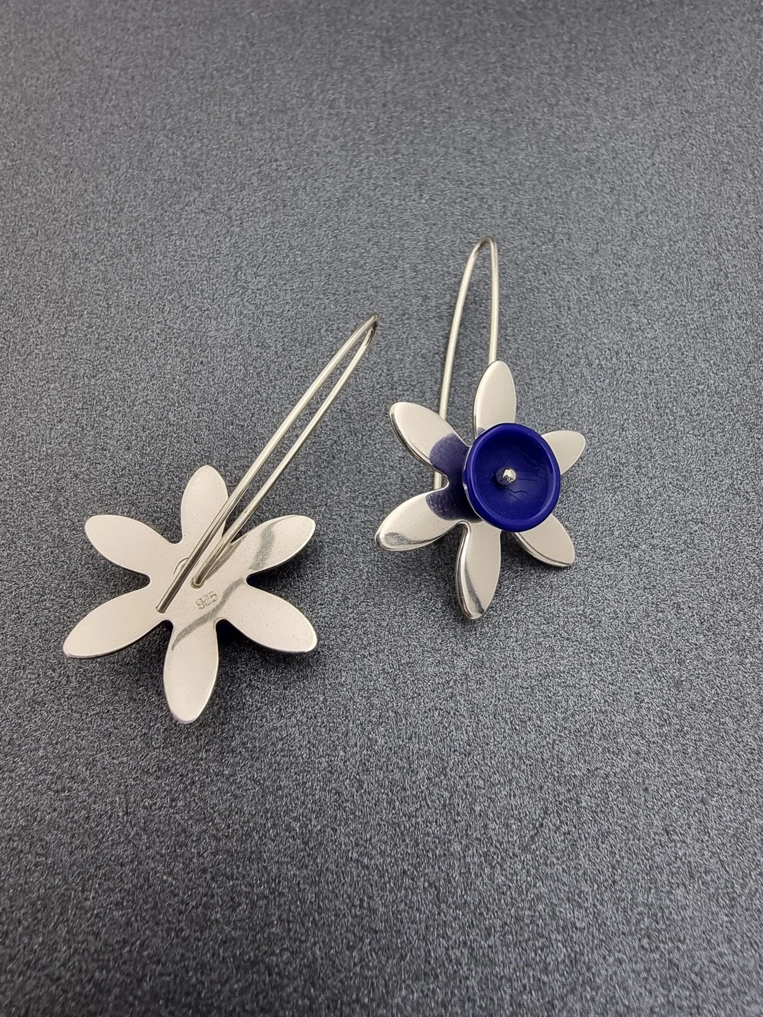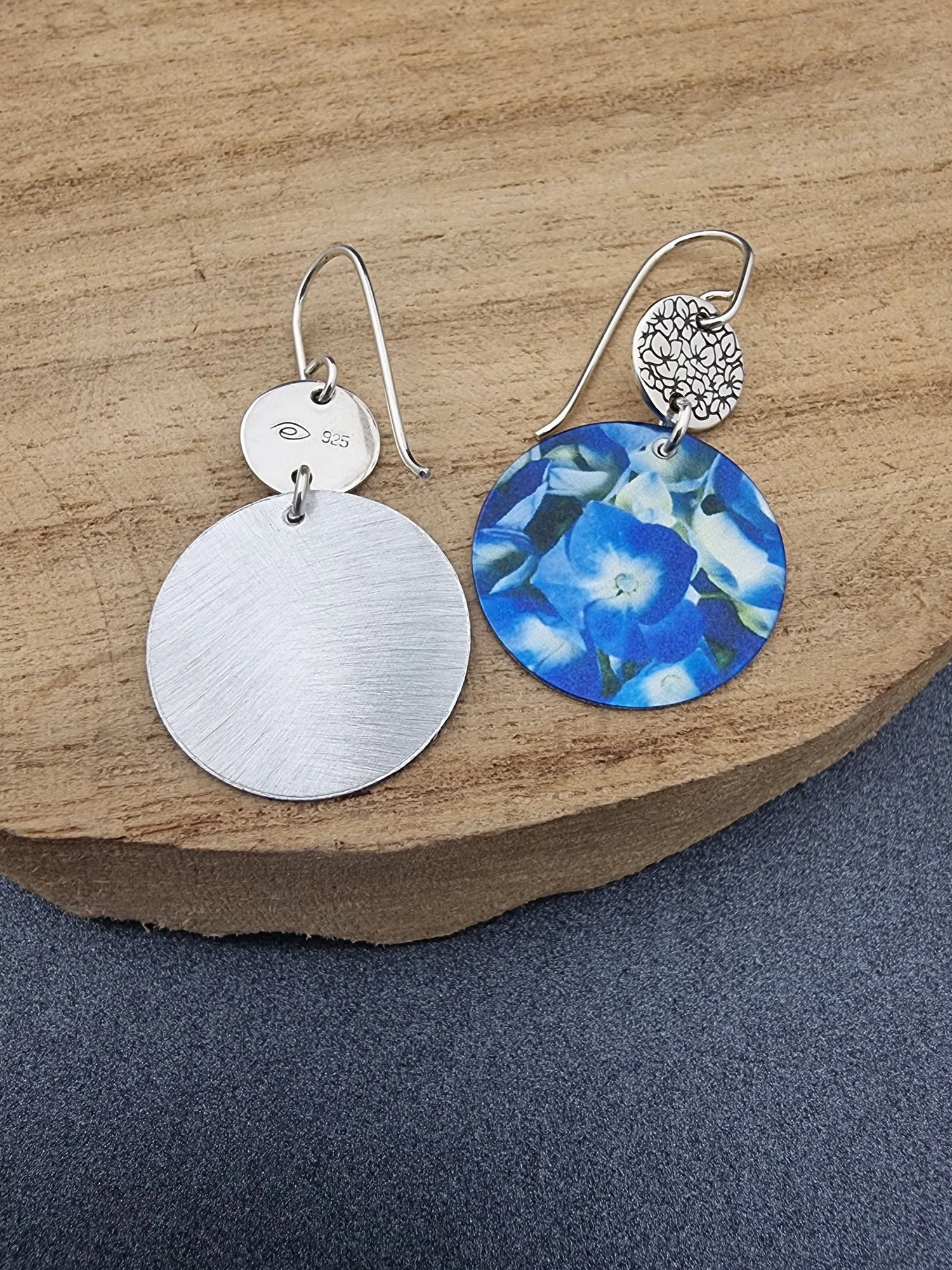 GARDEN BIRDS - Flower & Leaf 35mm disc earrings
