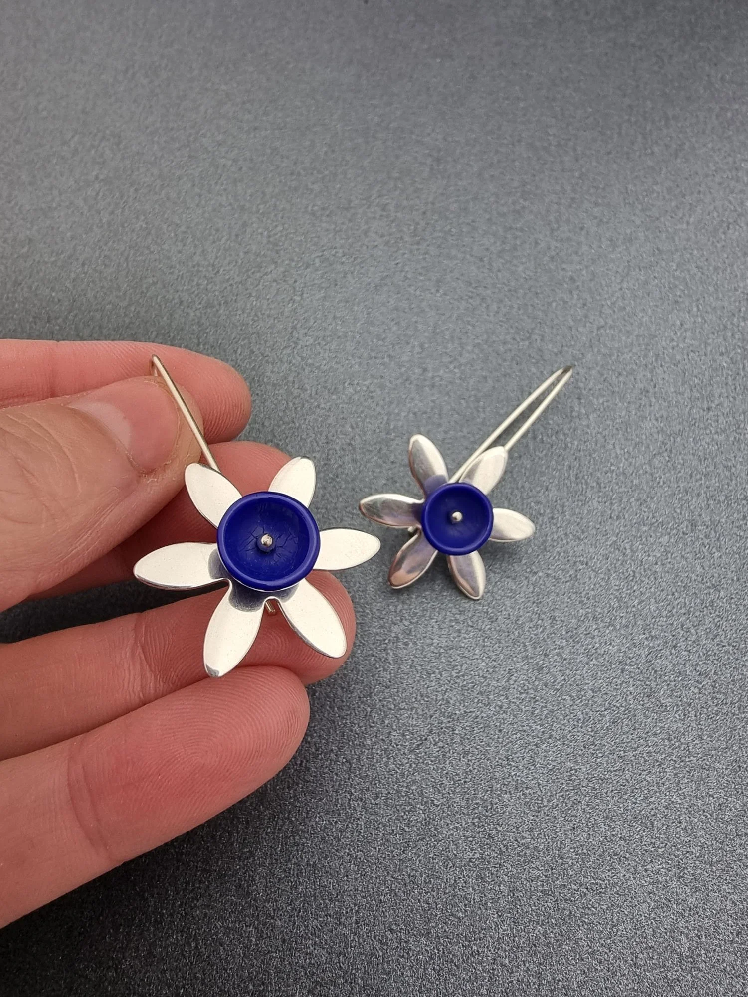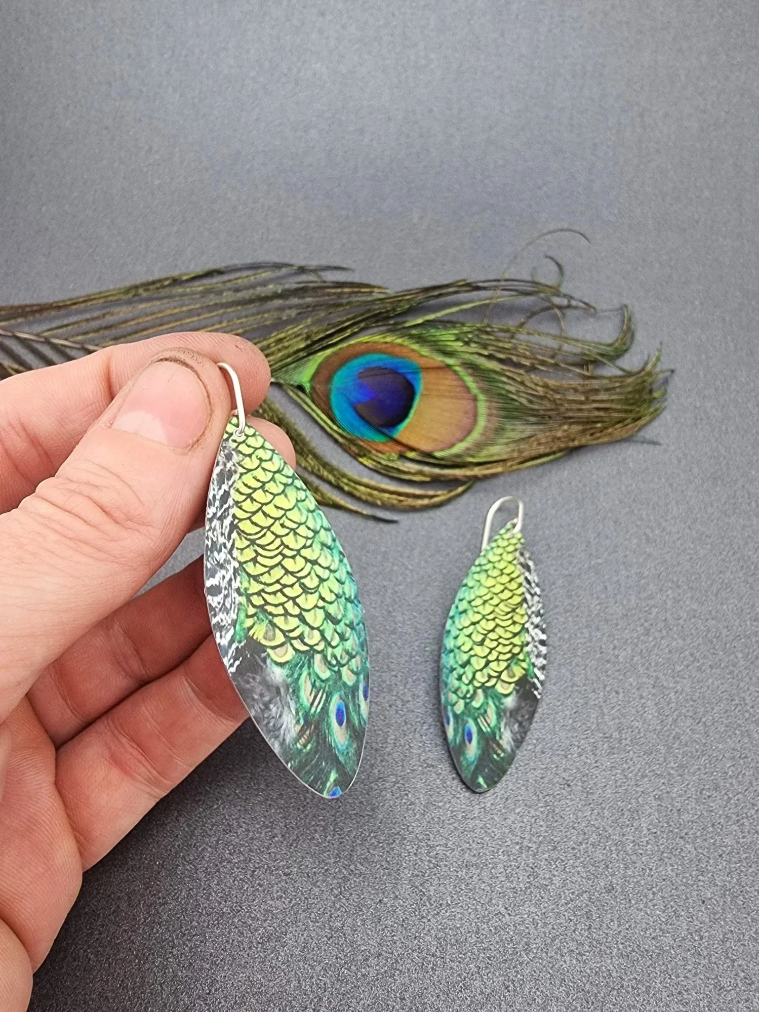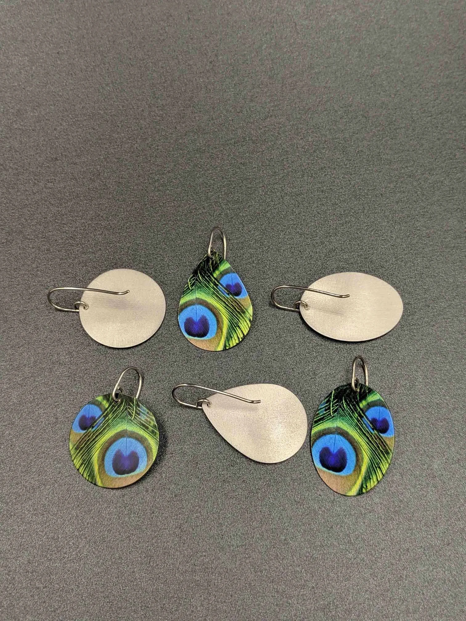 GARDEN BIRDS - Flower & Leaf 35mm disc earrings