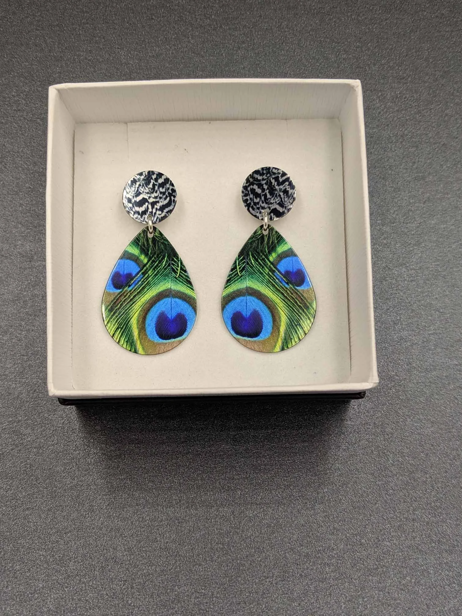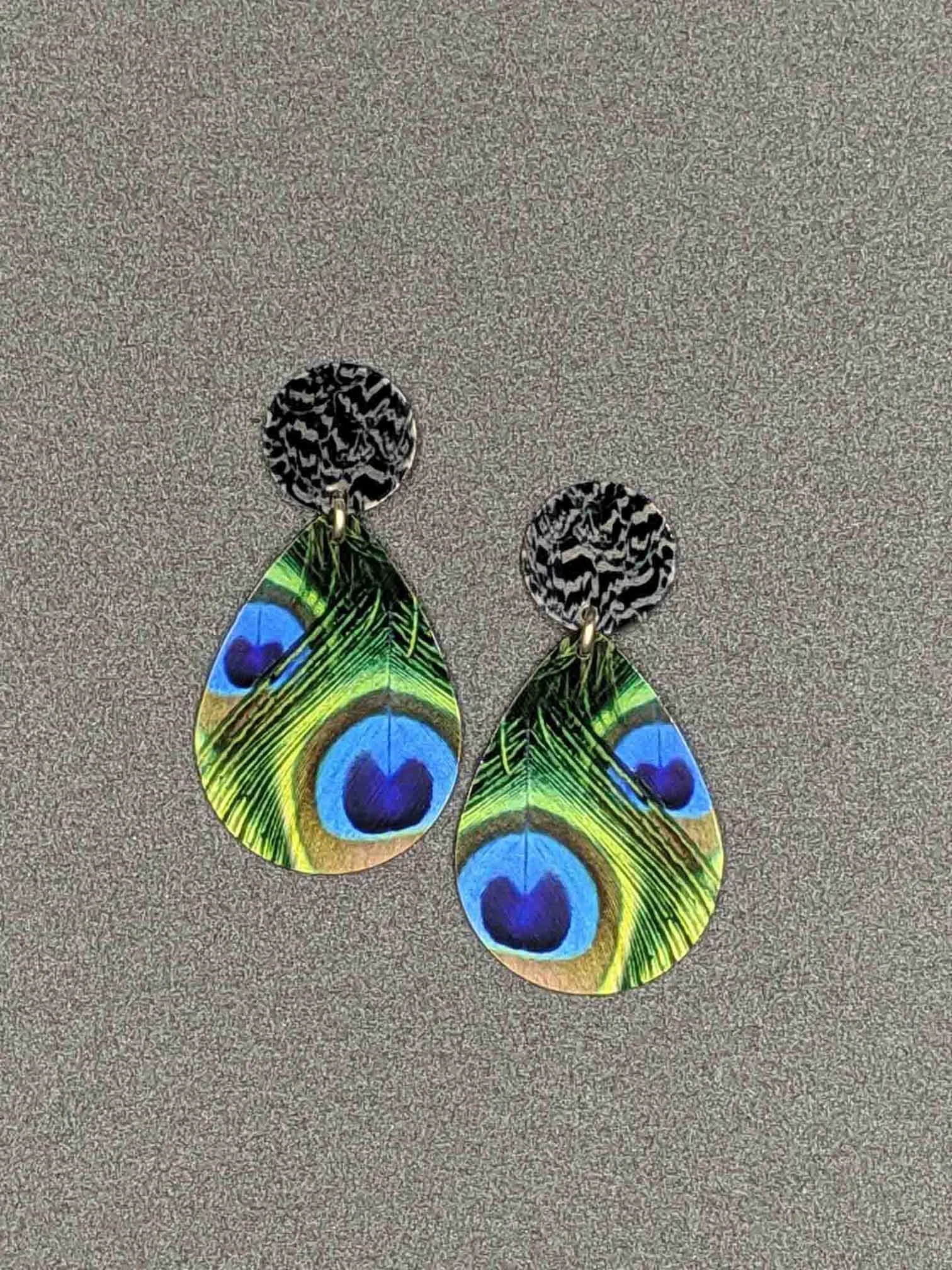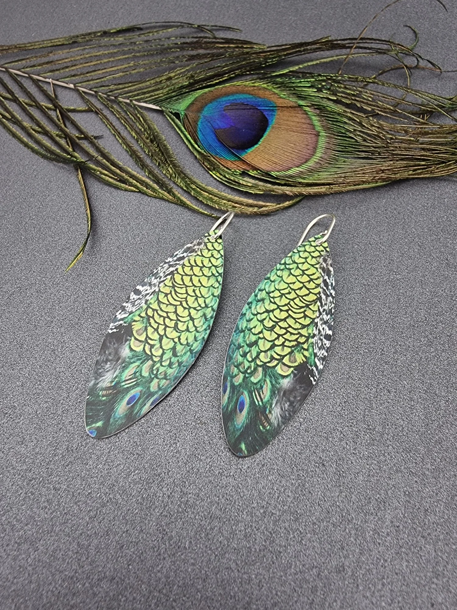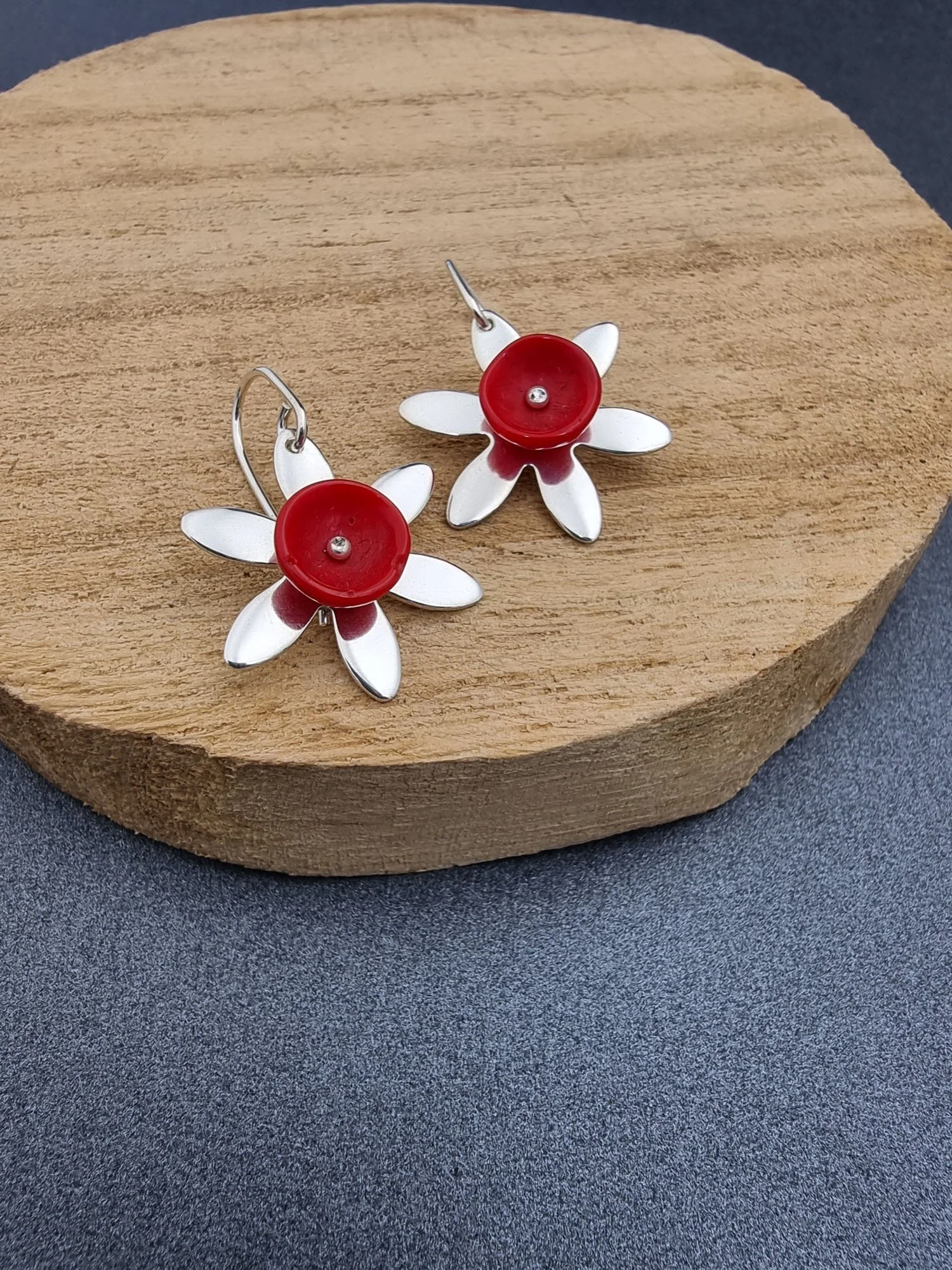 GARDEN BIRDS - Flower & Leaf 35mm disc earrings